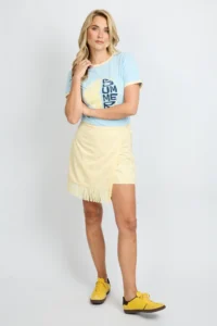 Flirty met een fancy finish. De ESTRELLA SKORT heeft een elegante overslag look en een subtiele bloemenprint die zorgt voor een zachte, vrouwelijke uitstraling. De fijne franjes langs de onderzijde geven een speelse beweging bij elke stap. Dankzij het short model draag je ’m comfortabel én zorgeloos. Combineer ’m met een blouse voor een dressed up vibe of style ’m met een knit voor een chic contrast. Classy met een little twist.Het model is 177 cm lang en draagt een maat 36. Dit item valt normaal. We raden je aan om jouw normale maat te nemen.100% Polyester – Voering: 100% Viscose