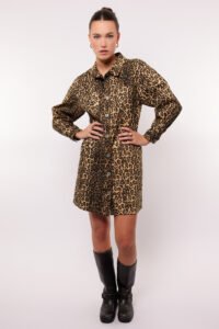 De MIKA JURK is jouw nieuwe statement piece. Deze jurk in all-over panterprint is speels, opvallend en toch draagbaar. De rechte fit, klassieke kraag en lange knopenrij maken ‘m ideaal om los te dragen of open als een lange blouse over een coole look.
