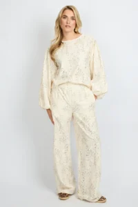 Romantic vibes, but make it powerful. De PALOMA BROEK heeft een high waist en wijde, soepelvallende pijpen die zorgen voor een elegante en vrouwelijke look. Het all over bloemenkant geeft een verfijnde uitstraling met een subtiele see through touch. Dankzij de voering draagt ’ie comfortabel en voelt hij heerlijk licht aan. Combineer ’m met de JAZMIN TOP voor een dreamy co ord set of style ’m met een basic top voor een modern contrast. Soft statement, strong impact.Het model is 177 cm lang en draagt een maat 36. Dit item valt normaal. We raden je aan om jouw normale maat te nemen.70% Katoen, 30% Polyester – Voering: 100% Polyester