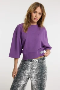 • Finished with rib trims along the neck, cuffs and bottom hem.