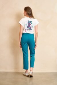 T-shirt Aneva is een wit T-shirt met artwork op de voor- en achterkant. De ronde hals en korte omslagmouwen zorgen voor een casual uitstraling. De stof voelt zacht aan en draagt prettig. Het T-shirt valt normaal en is een fijne basic voor elke dag.