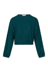 Top Talitha is een teal top met ronde hals en dropped shoulder.  Dankzij het elastische detail kan de top zowel cropped als iets langer worden gedragen. De pasvorm is relaxed en ideaal voor een casual, comfortabele look. Materiaal: 86% polyester, 14% katoen Model en fit: Relaxed cropped fit. Het model is 1.74 m en draagt maat S. Lengte top: 51 cm bij maat S 86% Polyester, 14% Cotton