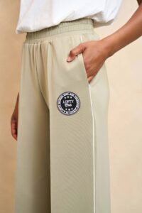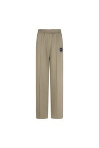 Broek Jill is een groene broek van een comfortabele sweatstof. De broek heeft een smock tailleband, subtiele split aan de onderkant en logo design op de linker broekspijp. Verder heeft de broek zowel steek- als paspelzakken. De groene joggingsbroek is qua pasvorm rechtvallend. Materiaal: 92% polyester, 8% elastaan Model en fit: Het model is 1.76m en draagt maat XS. De maat valt normaal Binnenbeenlengte broek: 81 cm bij maat S