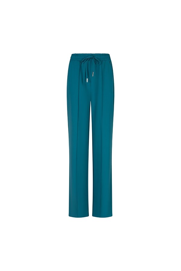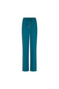 Broek Siona is een teal broek met hoge taille en rechte pijpen. De elastische tailleband met koordjes zorgt voor een comfortabele pasvorm. De broek valt relaxed . Materiaal: 86% polyester, 14% katoen Model en fit: Relaxed high waist, straight leg. Het model is 1.74 m en draagt maat S. Binnenbeenlengte broek: 82 cm bij maat S 86% Polyester, 14% Cotton